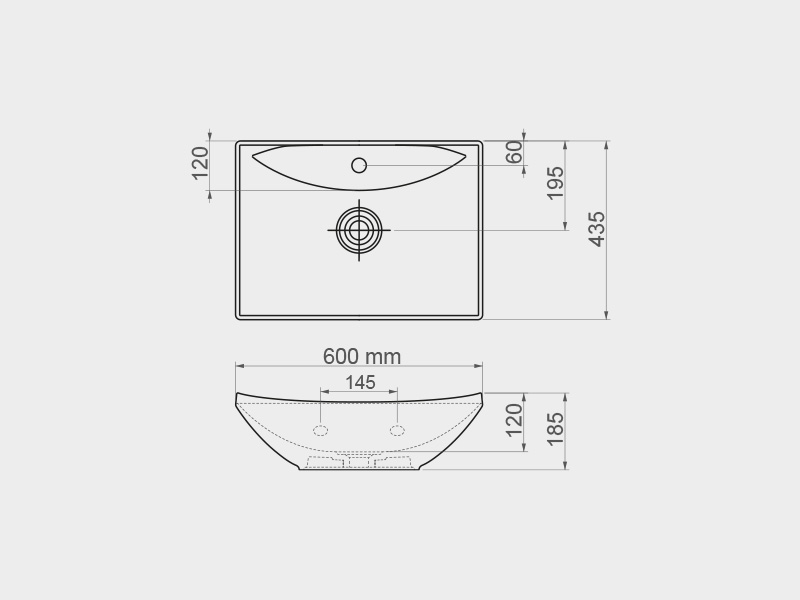 600 mm x 435 mm x 185 mm